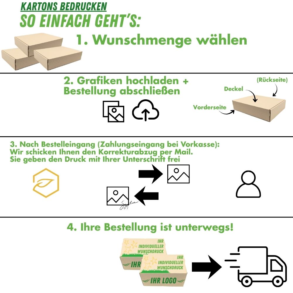 - Du bestellst die gewünschte Menge unserer bedruckbaren Kleinpaket-Kartons.