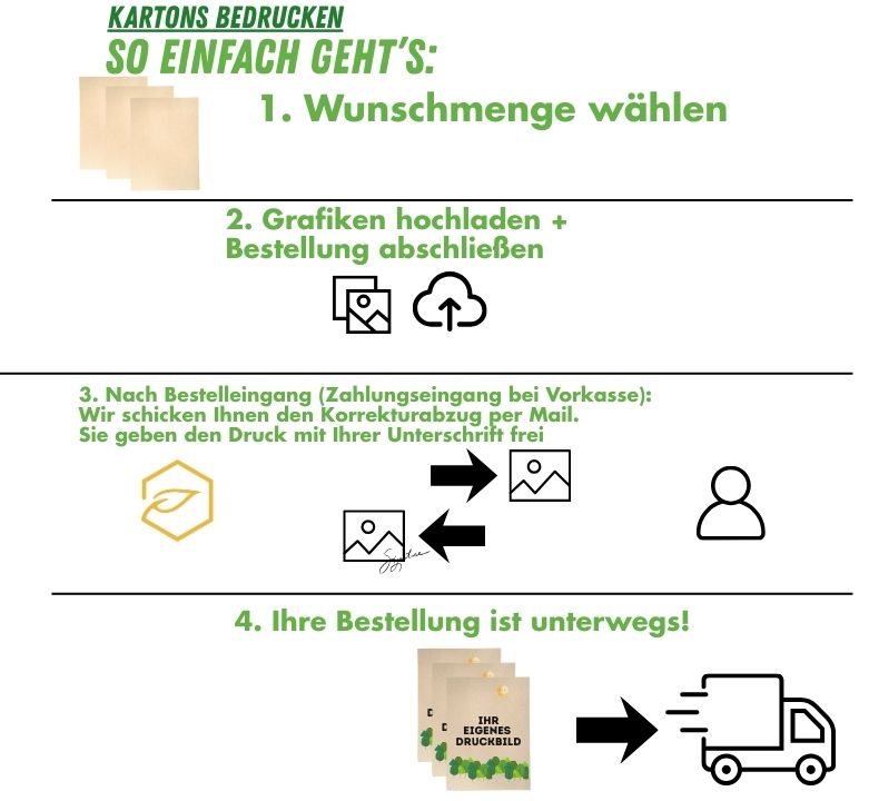 E-Commerce Papierfaltentasche 450X350X120 + 100 mm | FSC-zertifiziert Sie können die praktische Graspapier-E-Commercetasche bei uns mit Ihrem Logo oder anderem Bild bedrucken lassen. Mit einem individuellen Druck verwandeln Sie die die Tasche in einen attraktiven und umweltfreundlichen Werbeträger. Laden Sie beim Kauf Ihr gewünschtes Bild mit hoch: In unserem Grafikstudio prüfen wir die Machbarkeit und setzen uns direkt mit Ihnen in Kontakt, damit Sie Ihren Druck genau nach Ihren Vorstellungen erhalten.
