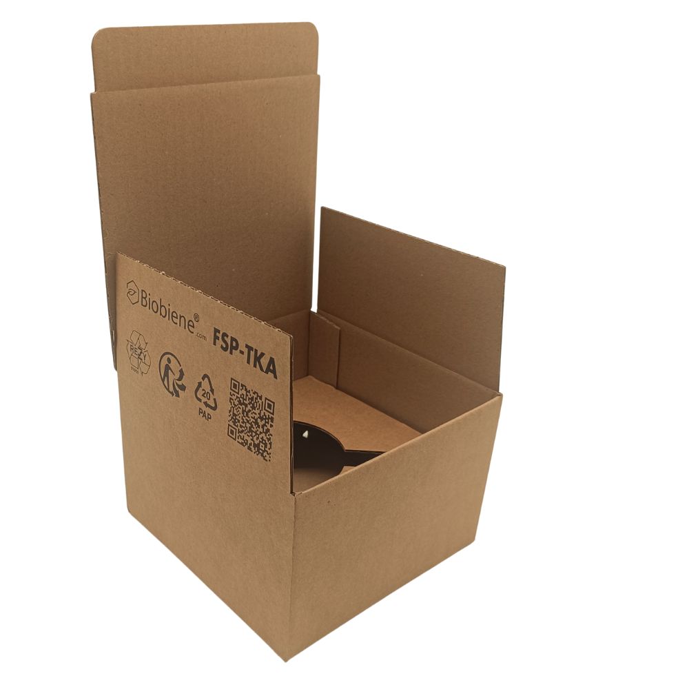 Der praktische Karton besitzt eine stabile B-Welle. Dieses Material wird aus Frischfasern aus Deutschland gewonnen, der Karton besitzt eine entsprechend hohe Schutzwirkung und sichert Ihre Ware im Paket. Rein aus Wellpappe ohne umweltschädliche Zusätze lässt sich der Tassenkarton von Biobiene als plastikfreies Verpackungsmaterial vollständig recyceln.