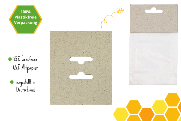 Die Euroloch-Öffnung ermöglicht ein sicheres Aufhängen an Wandhaken, Doppelbügeln oder Displayhaken. Sattelreiter bieten einen sicheren Verschluß Ihrer Beutel und können zusätzliche Info oder Werbefläche für Ihr Produkt oder Firmenlabel sein (auf Anfrage bedrucken wir Ihre Sattelreiter gern). Passende umweltfreundliche Beutellösungen für diese Größe 85x50/50mm: