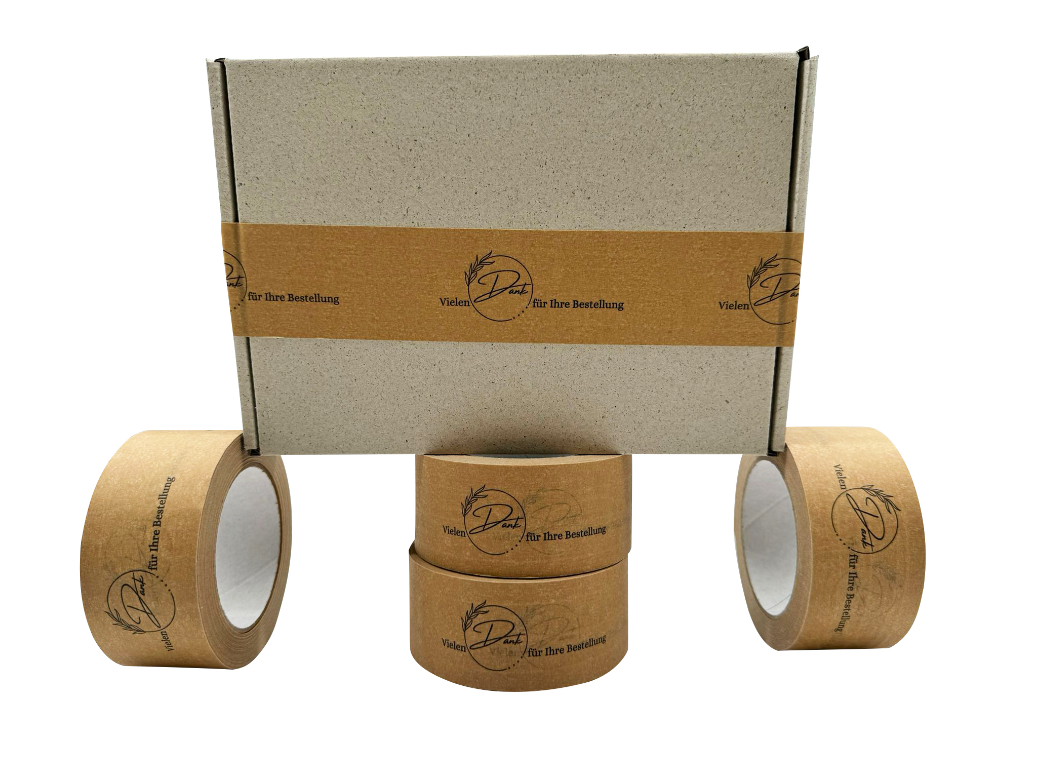Weihnachtsklebeband Papierklebeband 50mm x 50m Braun mit Logo Druck Weihnachten Weiß "VIELEN DANK FÜR IHRE BESTELLUNG" - Papierklebeband 50mmx50m mit 4-fach Fadenverstärkung und Aufdruck!